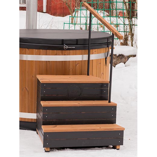 L’escalier Family est conçu pour les spas familiaux. Ces marches de 71 cm de haut sont équipées d’une main courante de 85 cm de haut pour un soutien pratique. L’escalier est extrêmement solide avec de larges marches. Vous pouvez facilement laissez vos chaussons dessus lorsque vous entrez dans le bain. L’escalier est conçu de tel façon qu’il est possible d’encastrer un appareil à filtration en dessous et le rendre ainsi invisible.