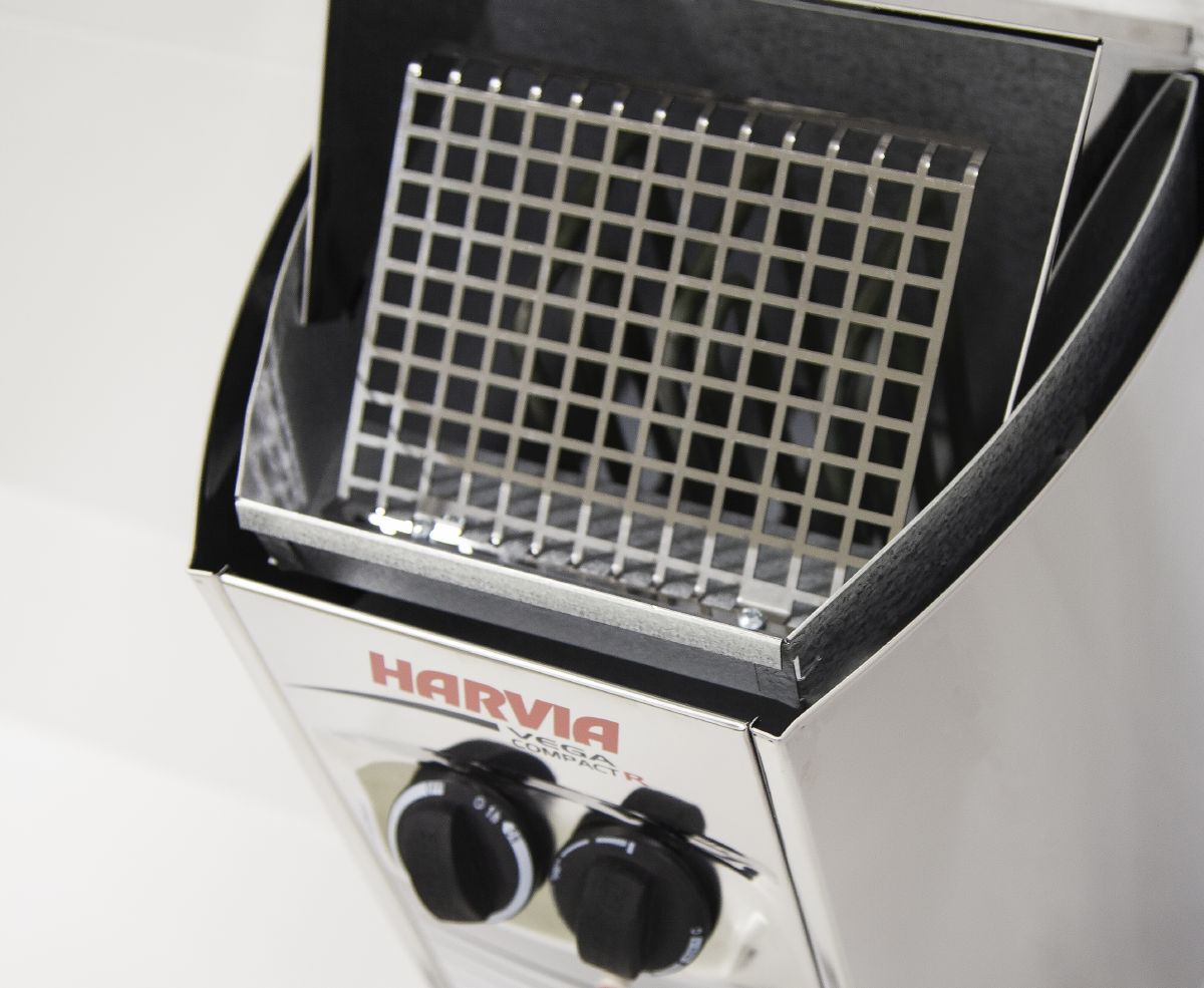 Le Harvia Vega Compact BC19 est un poêle puissant conçu spécialement pour les petits saunas. Contrairement à d’autres modèles, il n’a pas besoin d’être incliné, ce qui facilite son installation et son utilisation. Ses interrupteurs de commande, placés sur la partie supérieure, assurent une ergonomie optimale, permettant un réglage facile et intuitif.