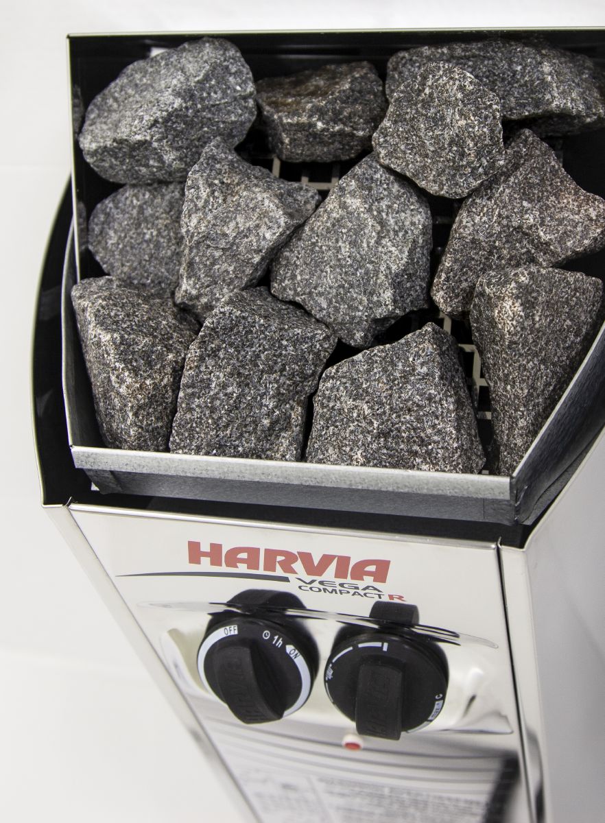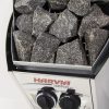 Les pierres arrondies Harvia (Ø 5-10 cm) ressemblent aux pierres arrondies des grands rapides de la nature. L’utilisation de cette pierre introduit une méthode de vapeur douce; l’eau qui coule s’écoule facilement vers les couches inférieures de la pierre. De cette manière, l’eau atteint une plus grande surface, générant plus de vapeur avec un toucher plus doux.