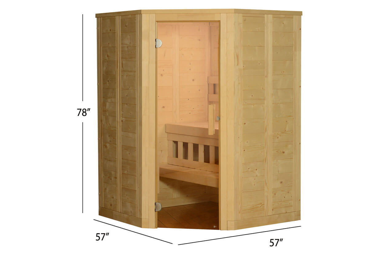 Deuxièmement, le sauna Suomi C peut accueillir confortablement deux personnes, avec beaucoup d’espace pour se tenir debout et se déplacer. Ce sauna utilisera votre sol existant comme sol à l’intérieur du sauna.